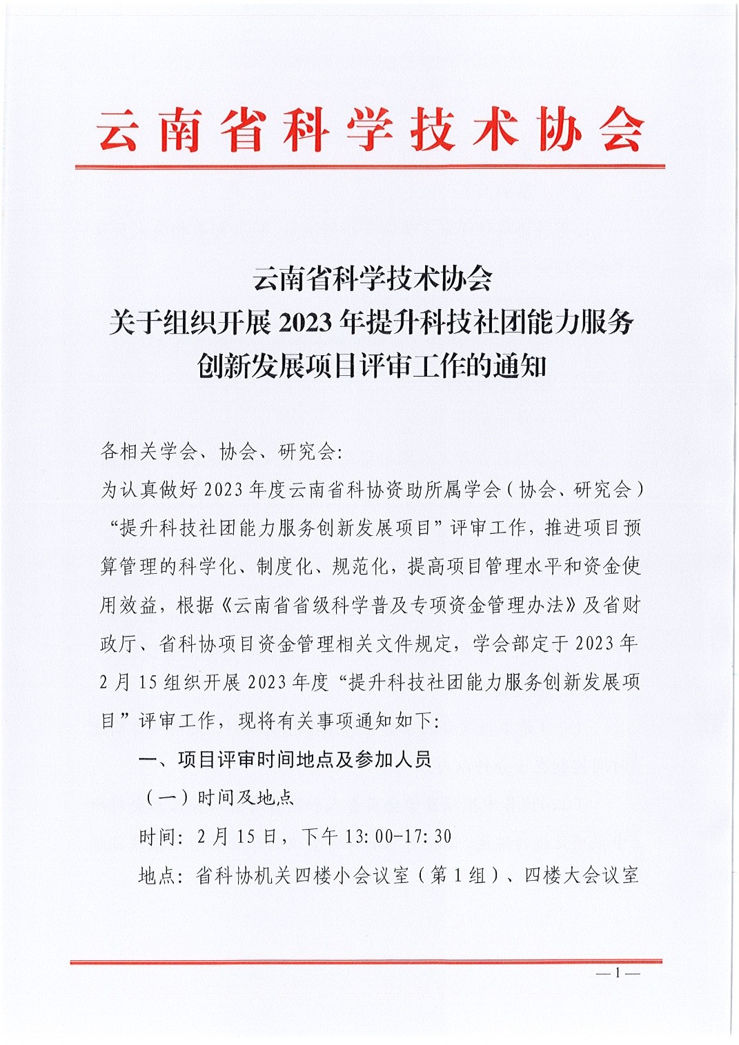 云南省科学技术协会关于组织开展2023年提升科技社团能力服务创新发展项目评审工作的通知.pdf