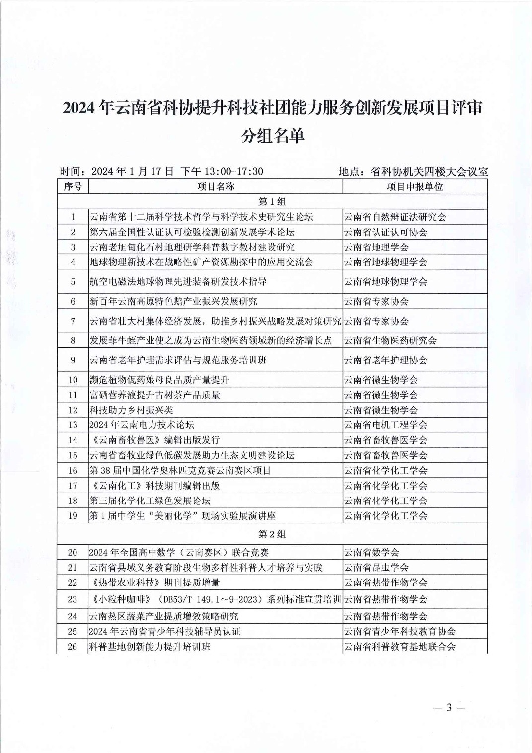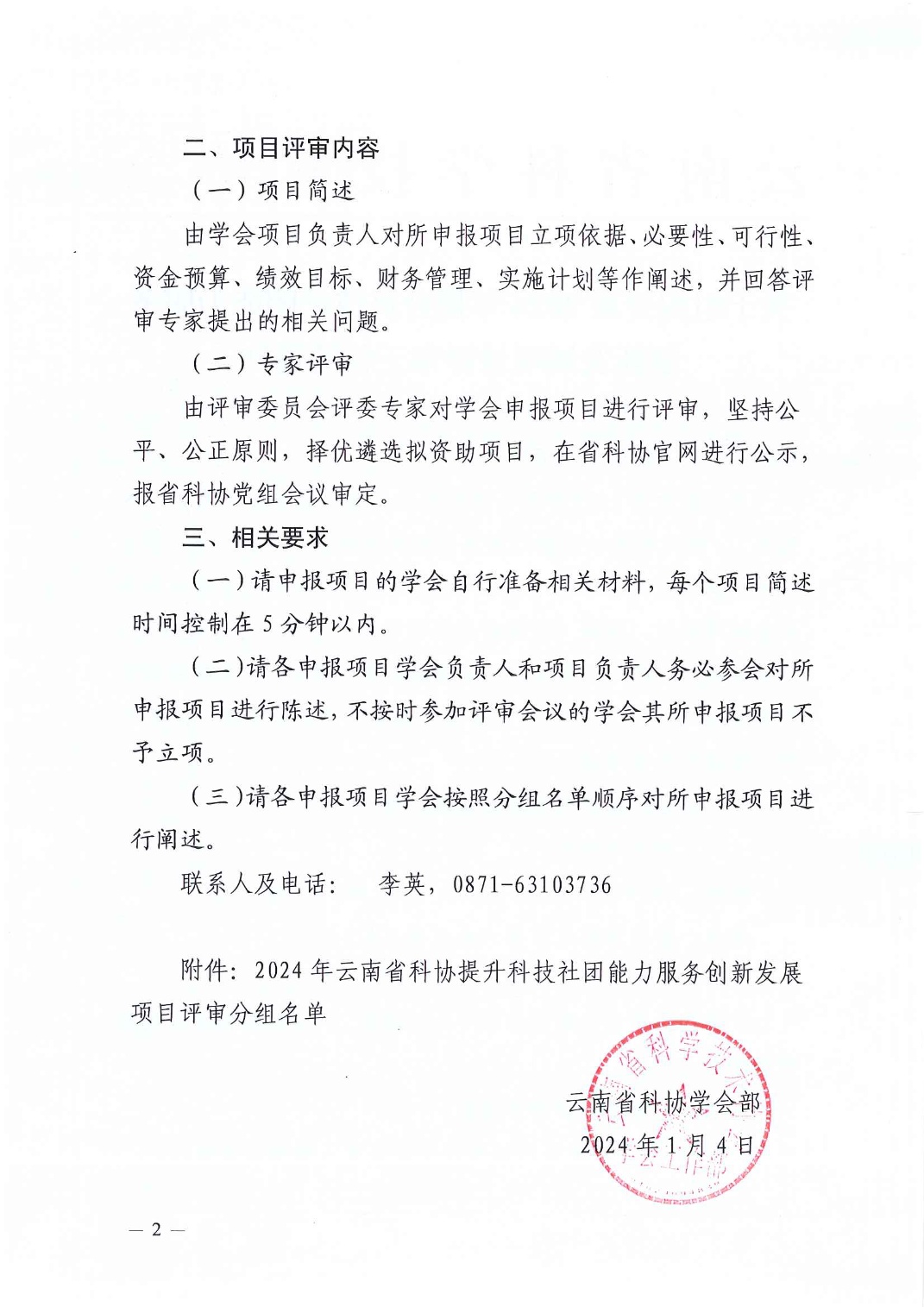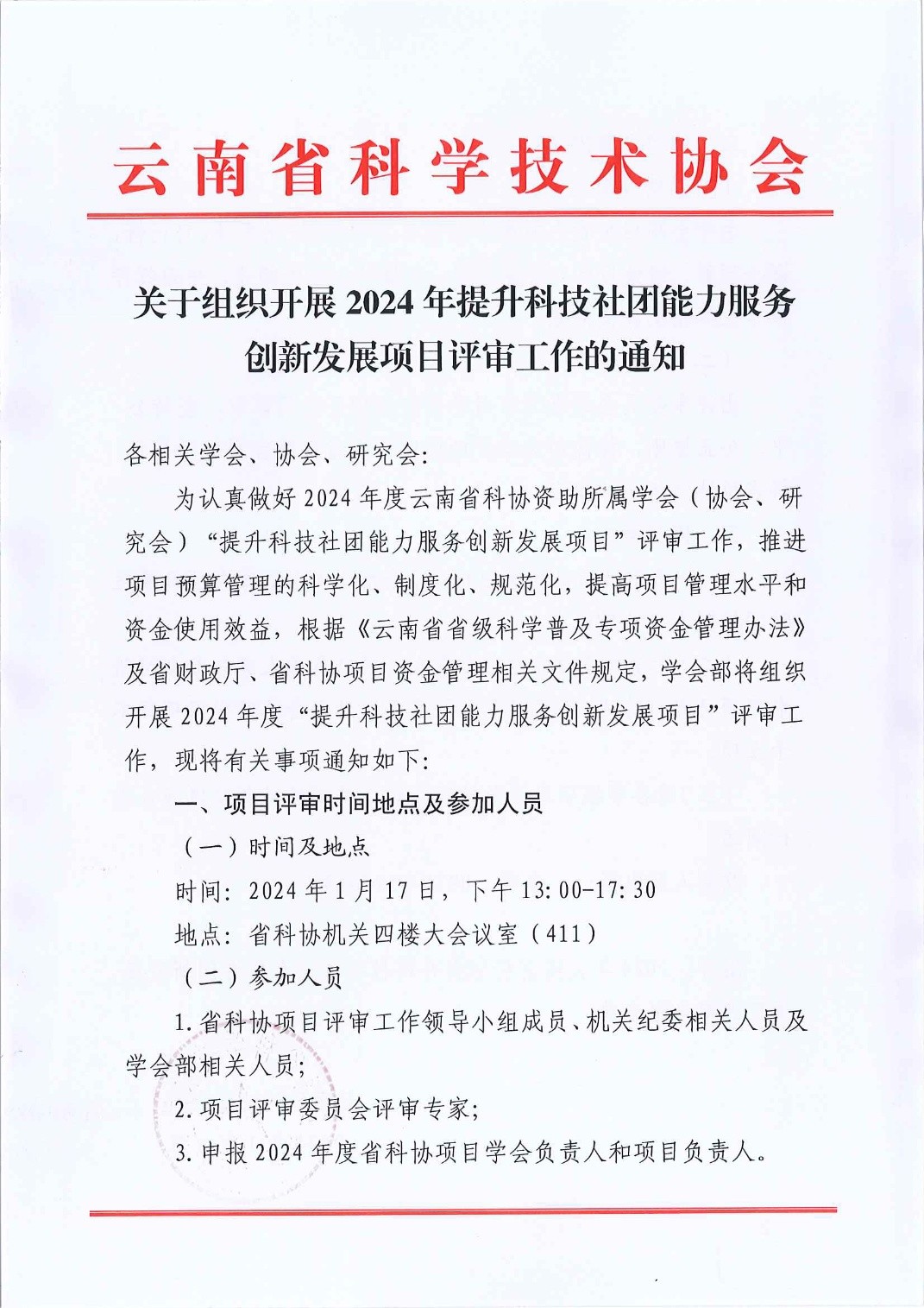云南省科协关于组织开展2024年提升科技社团能力服务创新发展项目评审工作的通知