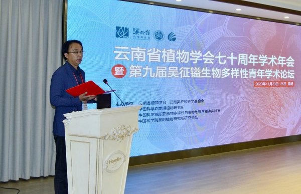 11月24日,云南省植物学会70周年学术年会暨第九届吴征镒生物多样性青年学术论坛在昆明市富民县正式拉开帷幕。会议由云南省植物学会、云南吴征镒科学基金会主办,中国科学院昆明植物研究所承办,会议得到中国科学院东亚植物多样性与生物地理学重点实验室和中国科学院昆明植物研究所研究生处的联合支持。来自中国科学院植物研究所、华南植物园、昆明植物研究所、西双版纳热带植物园,中国林业科学研究院高原林业研究所、云南省农业科学院、云南省林业和草原科学院、云南大学、云南农业大学、西南林业大学、云南师范大学、云南民族大学、昆明理工大学、大理大学、云南林业职业技术学院、曲靖师范学院等21家单位的140余位代表参加会议。